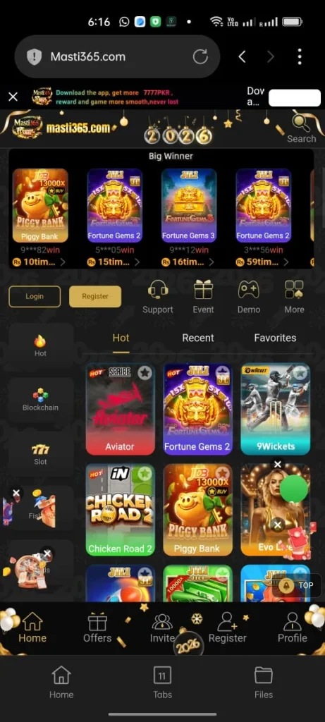 - Visit the official Masti365Game website on your mobile browser or Masti365.Com.